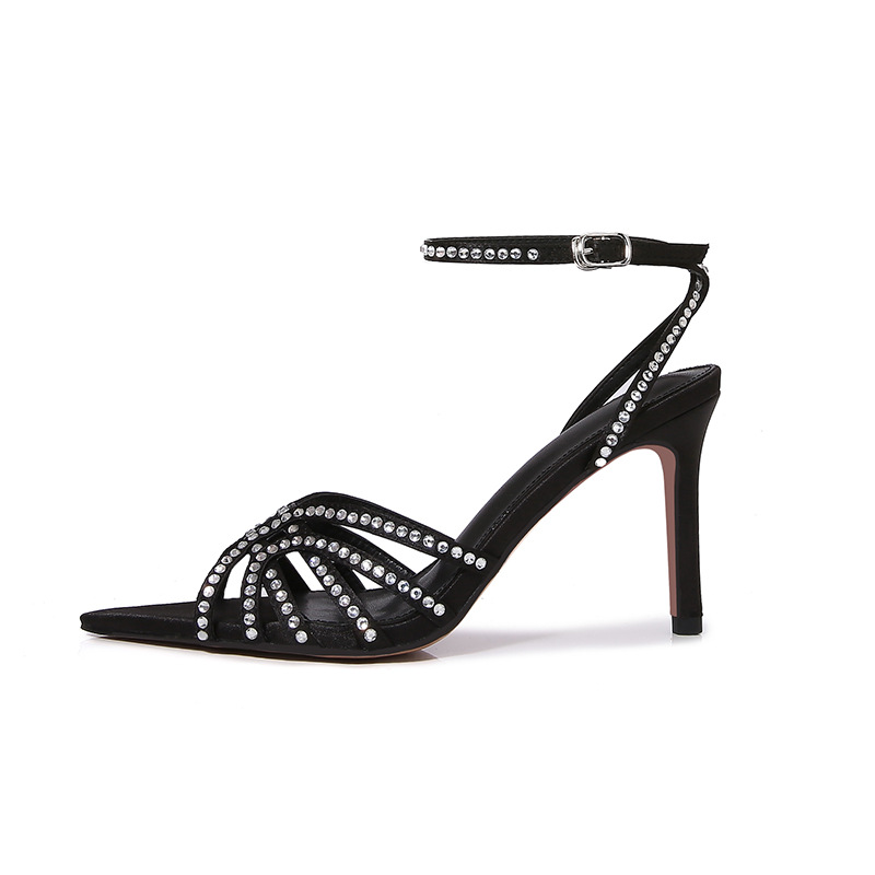 Satin stiletto pointed toe women's sandals sexy high heels open toe fashionable versatile women's shoes